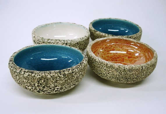 I am totally drooling over these bowls. I love the colours and the roughness of the outside of the bowls... AMAZING!